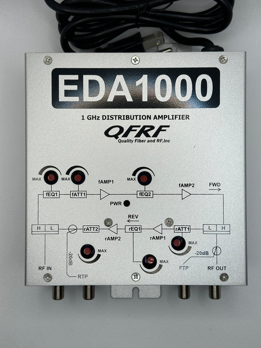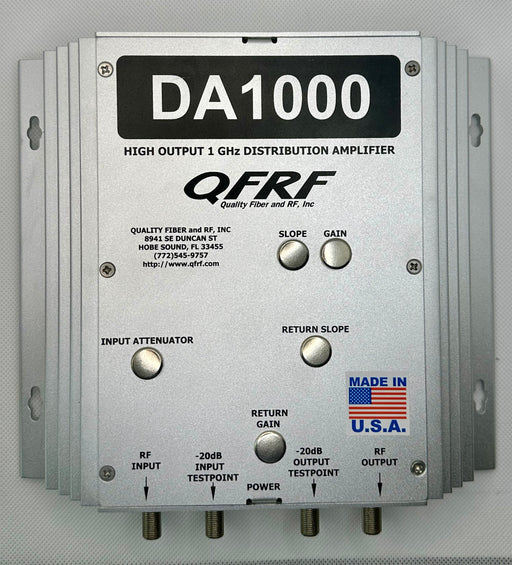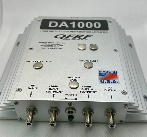 Explore our QFRF wall mount and rack mount distribution amplifiers, offering impressive 1GHz bandwidth and precise gain control through directional couplers and test-points. Powered by an AC switching power supply, these amplifiers feature cutting-edge low noise GaAs technology, with adjustable input EQ and attenuation for optimal performance.